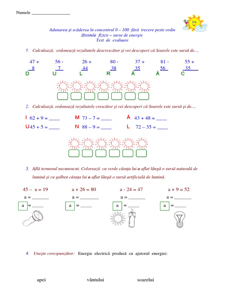 Evaluare Adunarea Si Scaderea Cu Trecere Peste Ordin 0 100