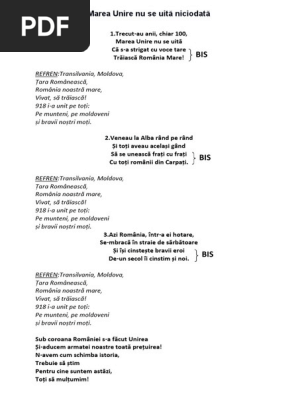 Marea Unire Nu Se Uită Niciodată Versuri