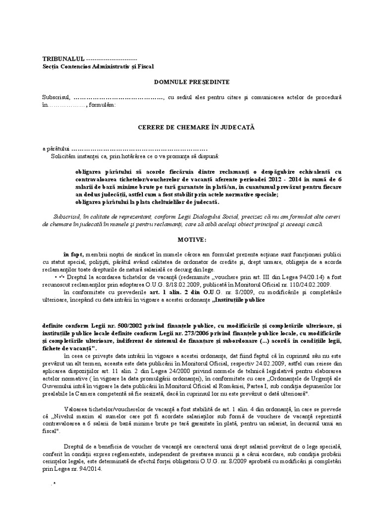Model Actiune In Instanta Pentru Obtinere Voucere Tichete Vacanta