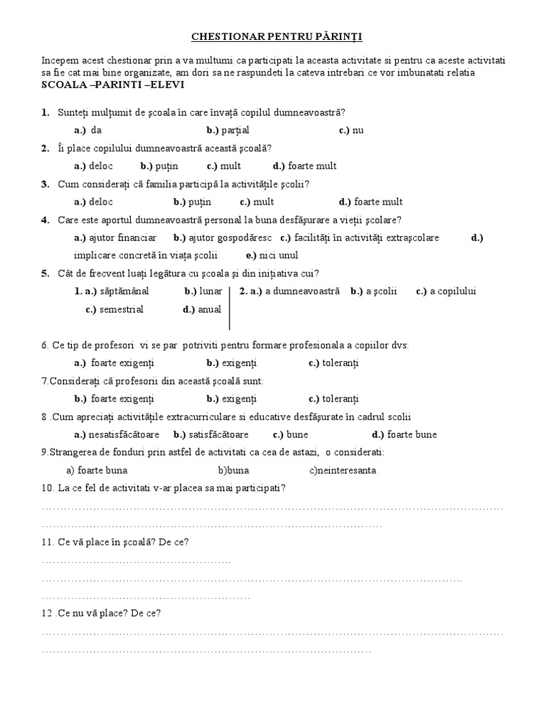 Doc Chestionar Pentru Părinţi Implicarea Familiei In Educaţia