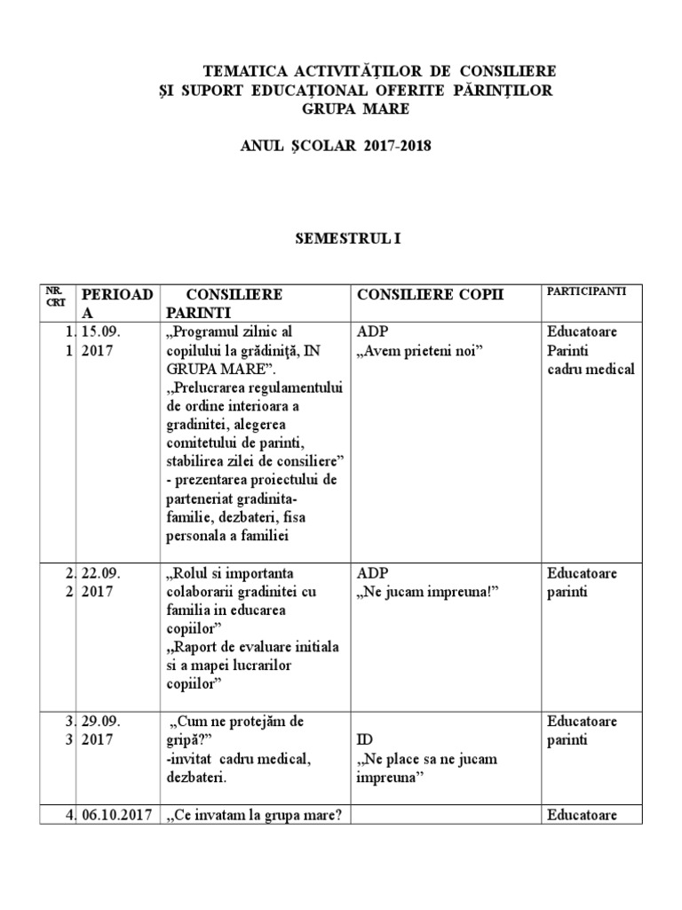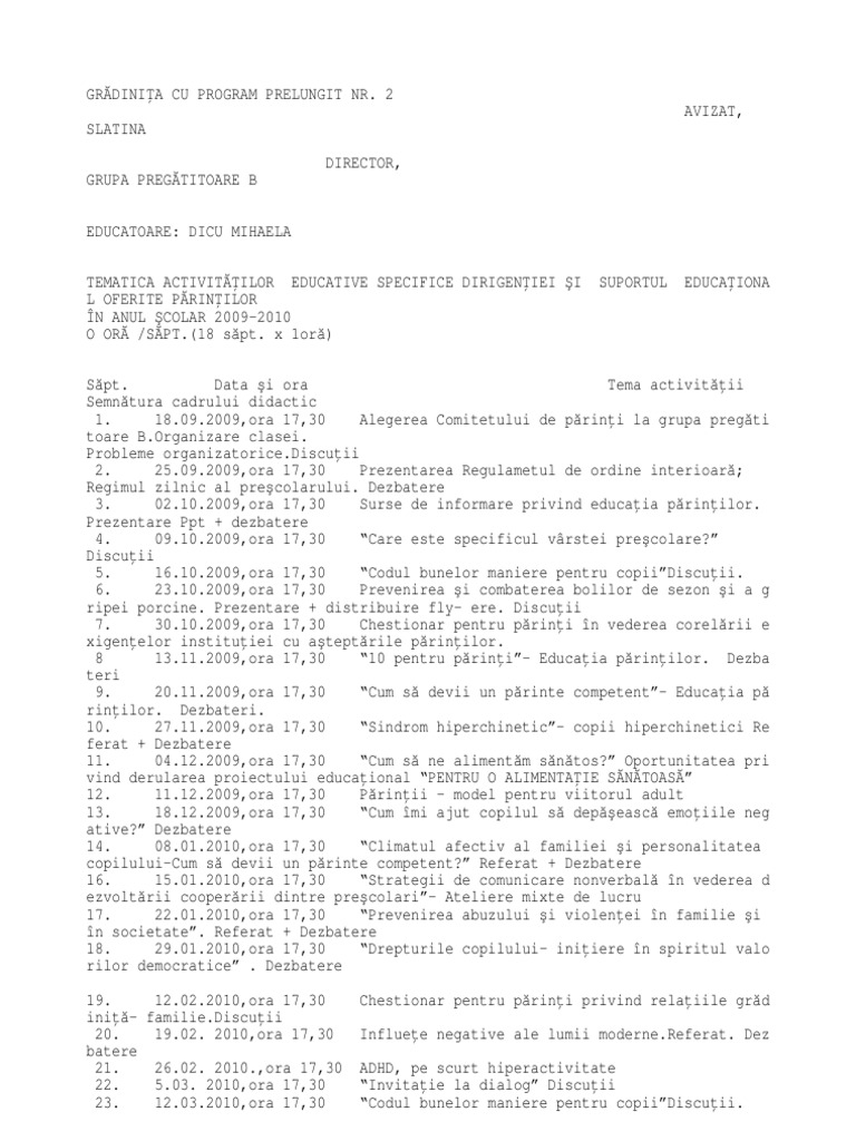 Doc Planificarea Activităţilor De Consiliere A Părinţilor 1 Oră