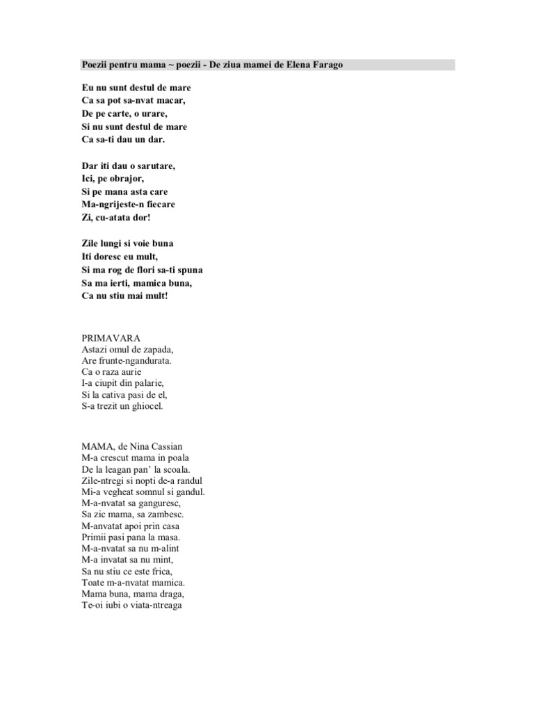 De Ziua Mamei De Elena Farago Anideșcoală Ro