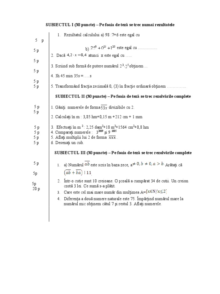 Evaluare Finala Matematica A V A