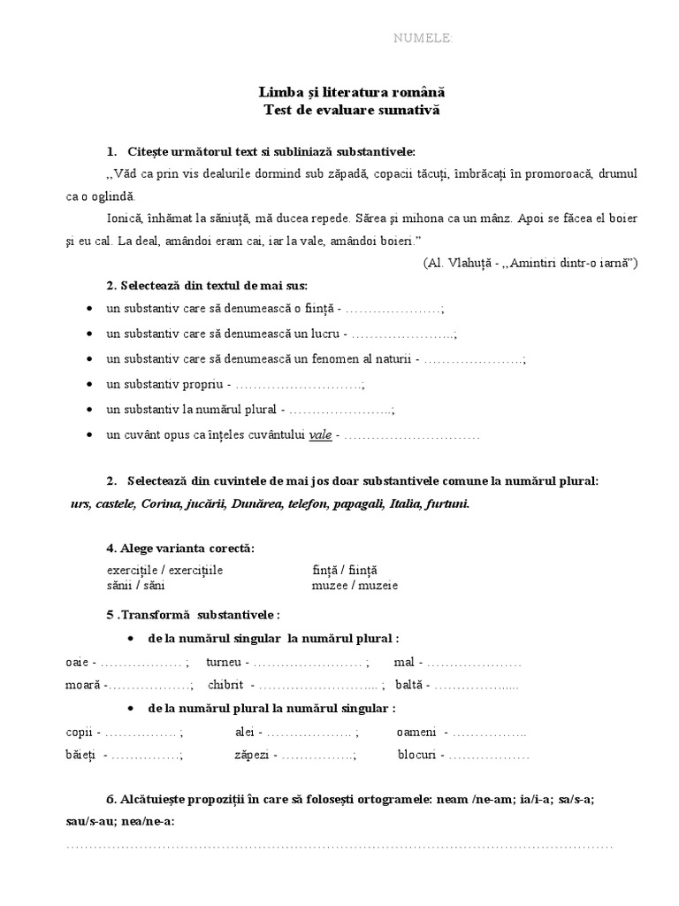 0 stele 0 review uri. 8 au spus mulţumesc. Glilianaviorica scoala de arte si meserii turt. Probă de evaluare sumativa la limba romana substantivul.
