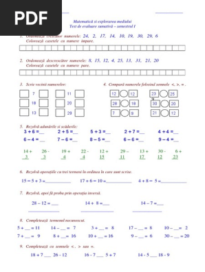 Evaluare Sumativa Matematica Clasa 2 Semestrul 1 Cu Descriptori