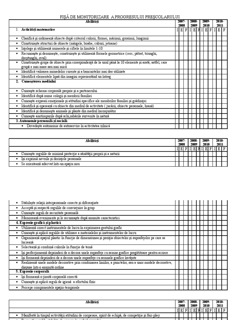 Fisa De Apreciere A Progresului Individual Grupa Mare
