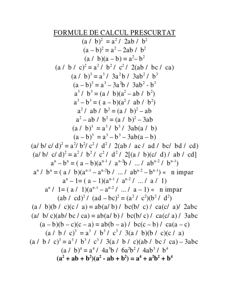 Formule De Calcul Prescurtat Trițescu Ionuț