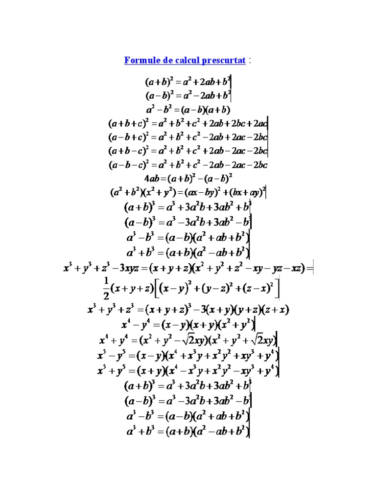 Formule De Calcul Prescurtat Teorie Exemple Exercitii