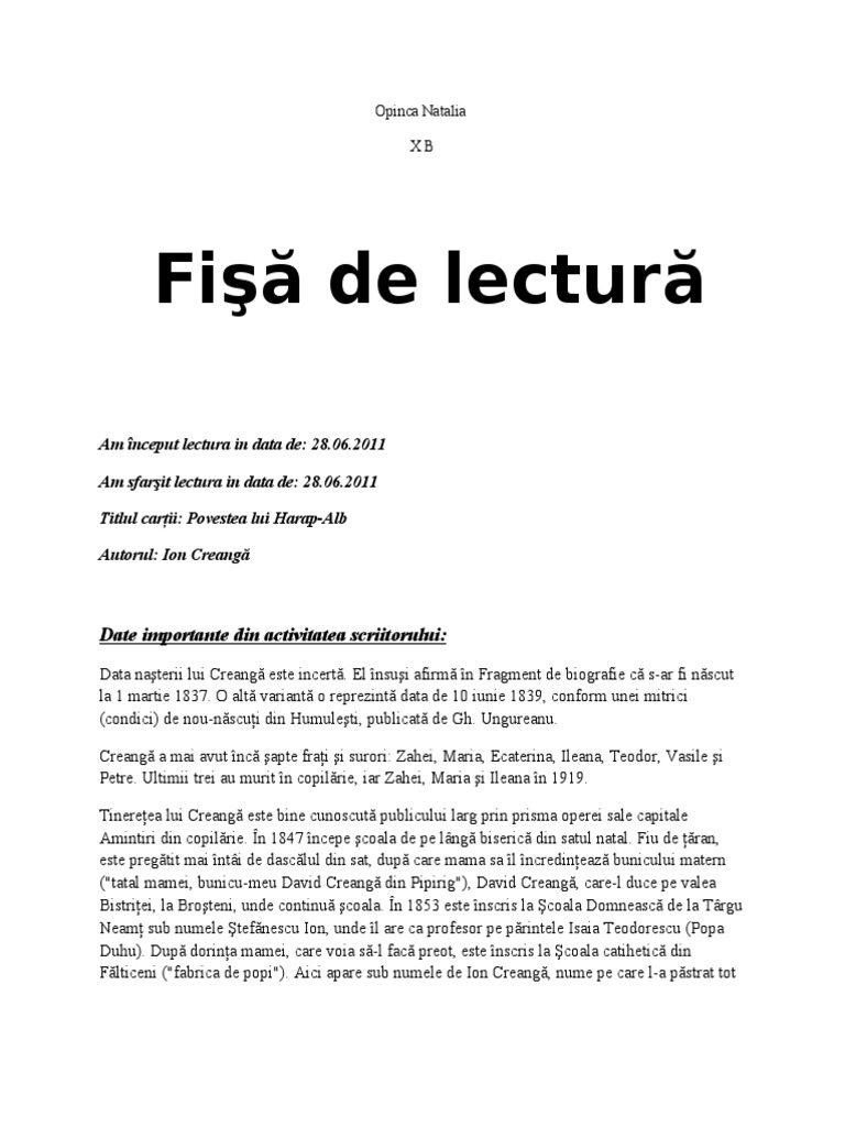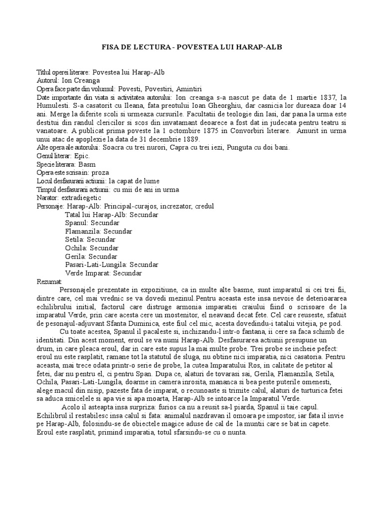 Fisa De Lectura Harap Alb Vnd5q8o6ojlx