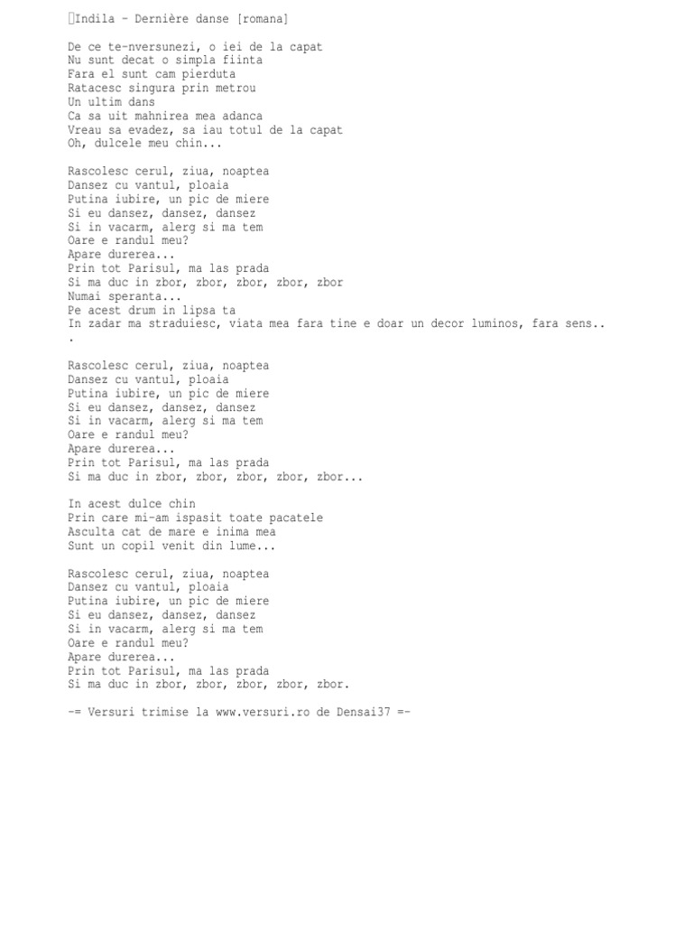 Indila derniere danse versuri. Arhiva cu 18 versuri de indila inclusiv. Paro est un mot qui aurait été inventé par des jeunes de banlieues et autres milieux sociaux favorisant la création d argots. Versuri indila derniere danse. By ala zemzmi.