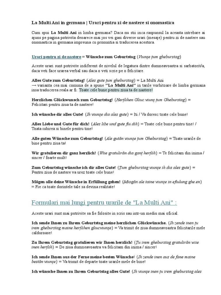 La Multi Ani In Germana Urari Pentru Zi De Nastere Si Onomastica