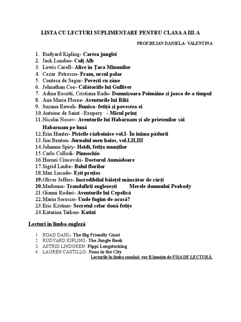 Valentina ştefan cărădeanu emilia chiş magdalena costache florica suvorov isbn. Nonfiction back to school nicoleta stănică editura lucman lecturi suplimentare clasa a iii a nicoleta stănică 978 973 723 168 0. Lista lecturi suplimentare clasa a iv a lecturi suplimentare și fișe de lectură a ii a a iii a a iv a va propun mai multe variante de lecturi si in functie de clasa pe care o aveti alegeti lecturile potrivite. Lecturi suplimentare pentru clasa a iii a culegere de texte literare care completeaza cunostintele elevilor.