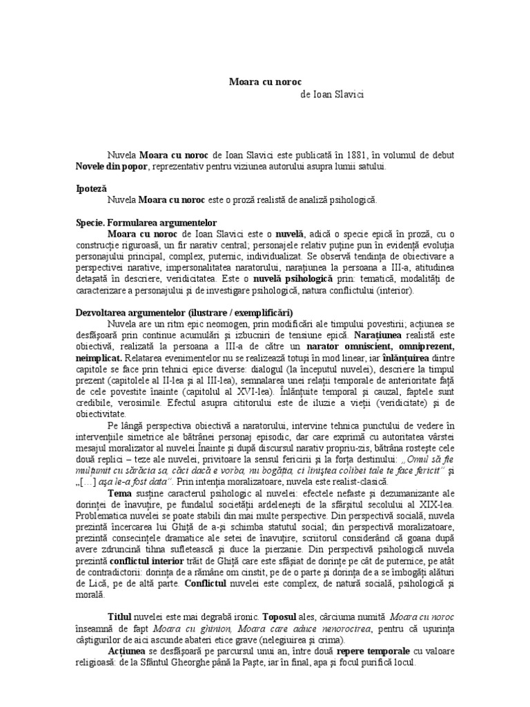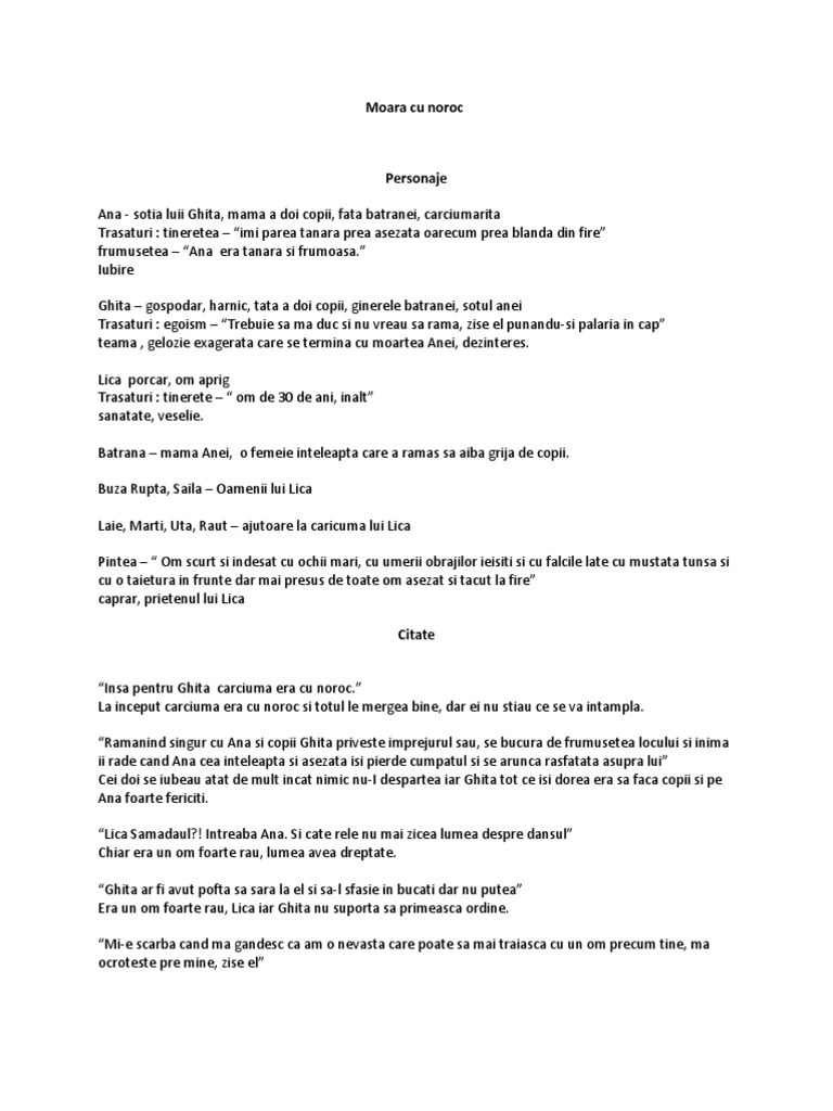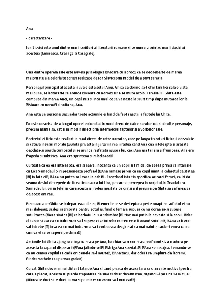 Doc Caracterizare Ghita Moara Cu Noroc De Ioan Slavici