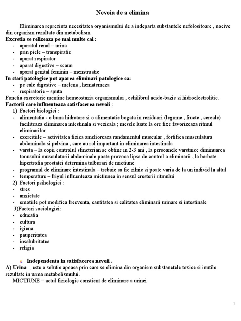 Micţiune emisiune de urină act fiziologic conştient de eliminare. De aici se vede interacţiunea între nevoia de a elimina şi celelalte nevoi fundamentale. Eliminarea reprezintă necesitatea organismului de a se debarasa de substanțele nefolositoare vătămatoare rezultate din metabolism. Nevoia de a elimina by georgiana2marilena2r.