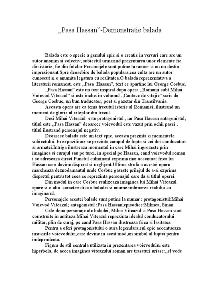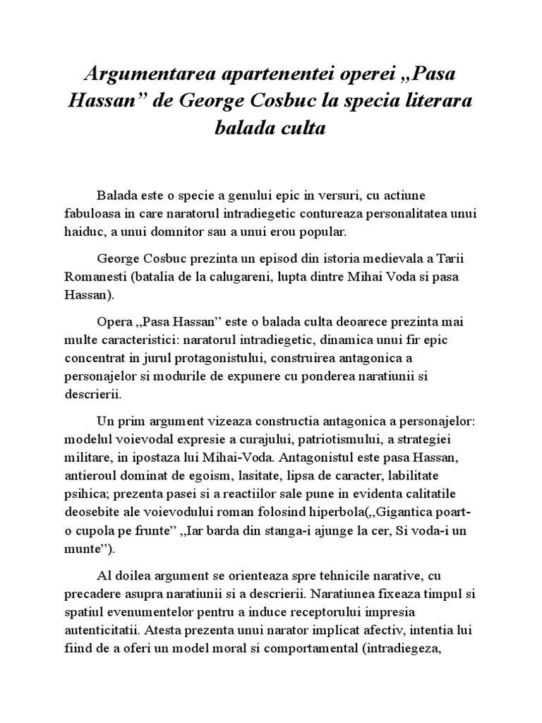 Argumentare Pasa Hassan Balada Culta 327962 Graduo