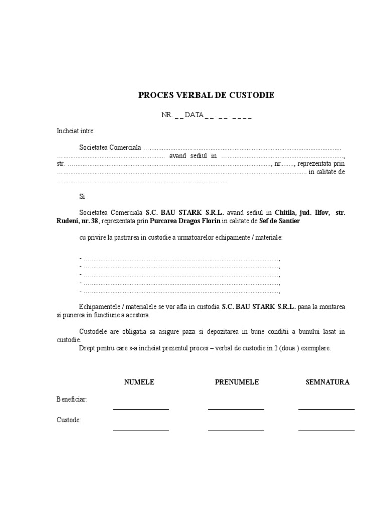 Proces Verbal De Custodie Model