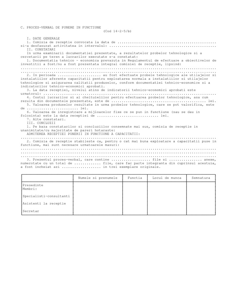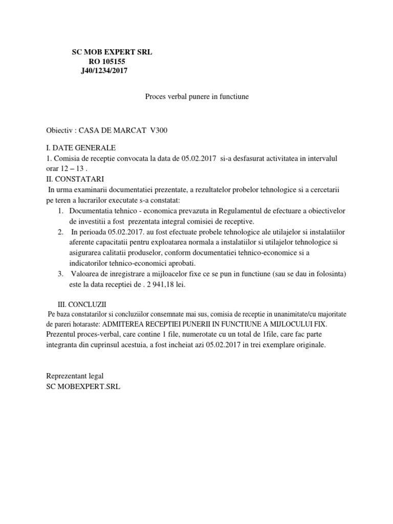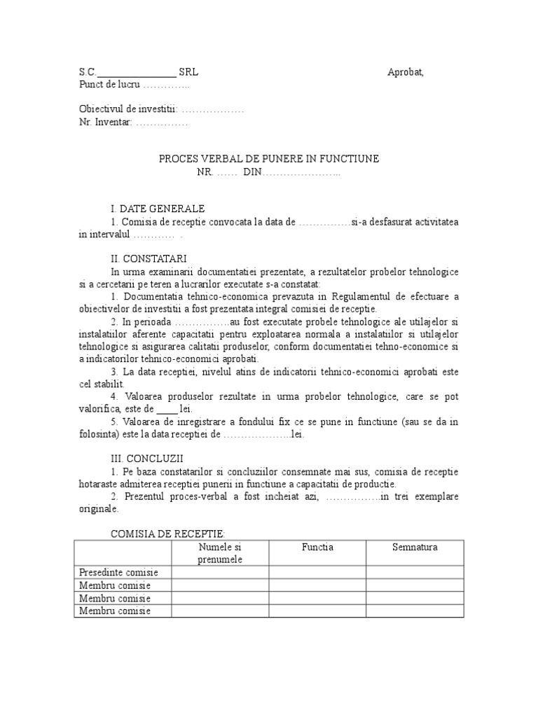 Procesul Verbal De Punere In Functiune Receptie Contabilitate