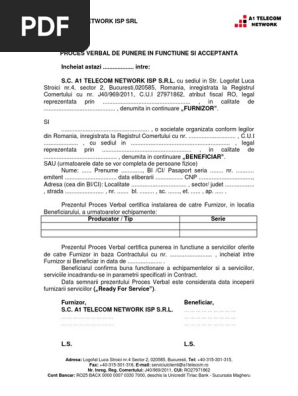 Http Www A1telecom Ro Docs Contracte 5 Proces Verbal Punere In Functiune Acceptanta V 1 2 Pdf