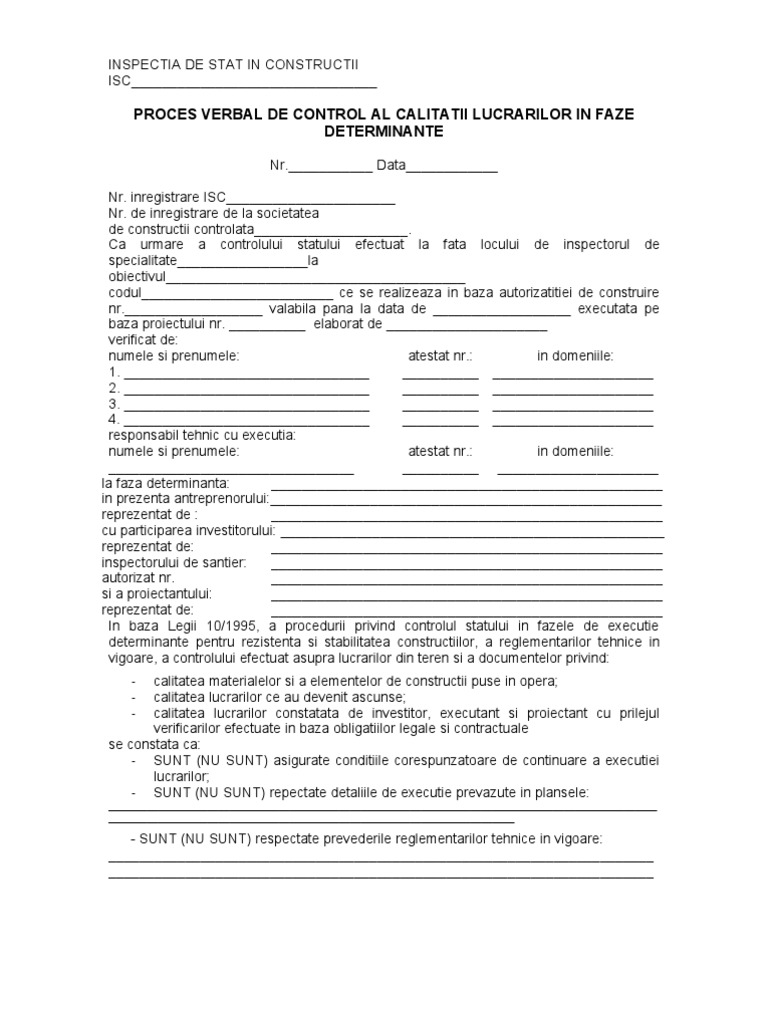 Proces Verbal De Recepţie Calitativă A Armării Pentru Lucrări Ce
