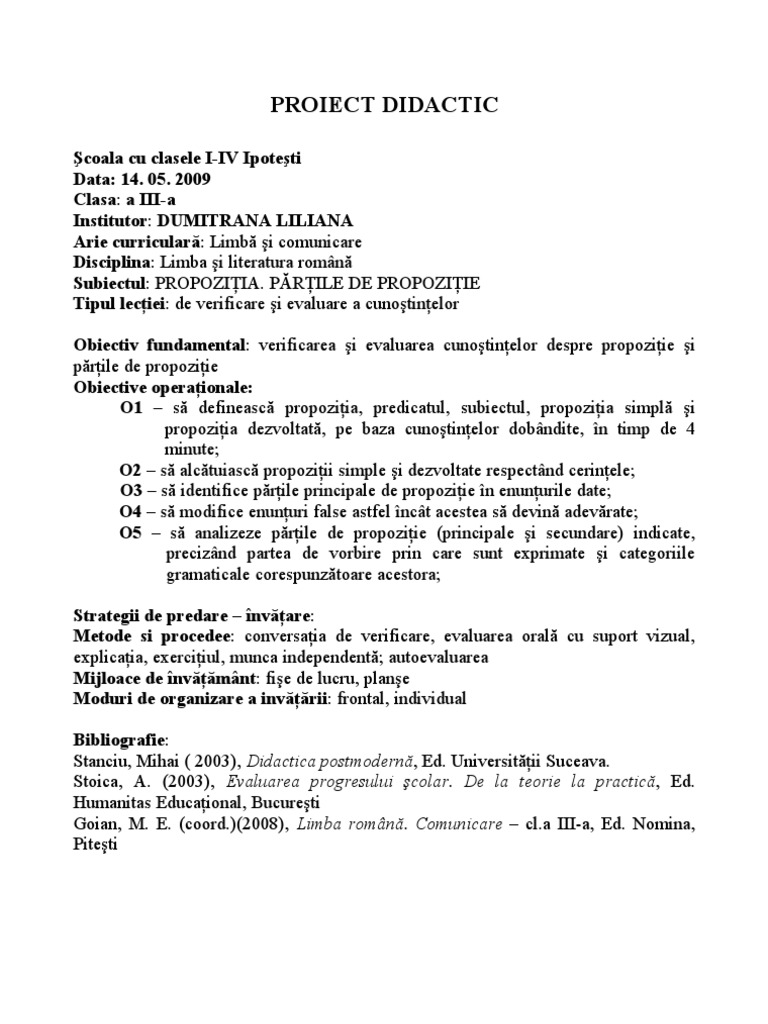 Doc Proiect Didactic Iulia Anca Academia Edu