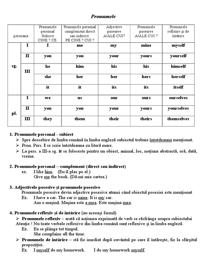 Pronumele In Engleza The Pronoun Gramatica Limbii Engleze