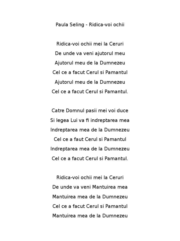 Ridica Voi Ochii Mei La Ceruri Versuri
