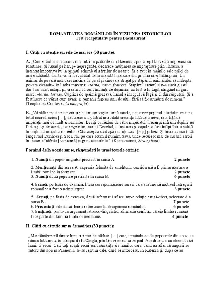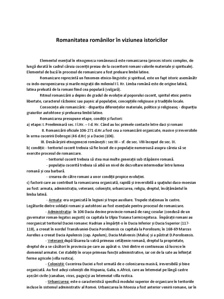 Romanitatea Romanilor In Viziunea Istoricilor Test