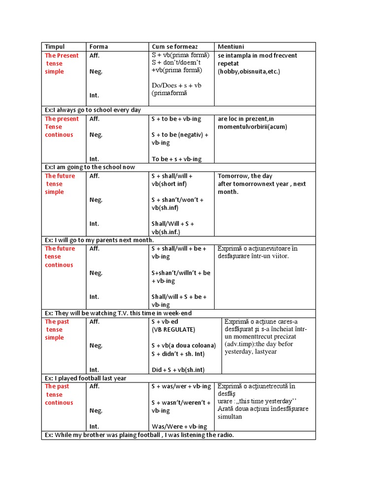 Pdf Tabel Timpuri Verbale Engleza Cristina Anghel Mocanu