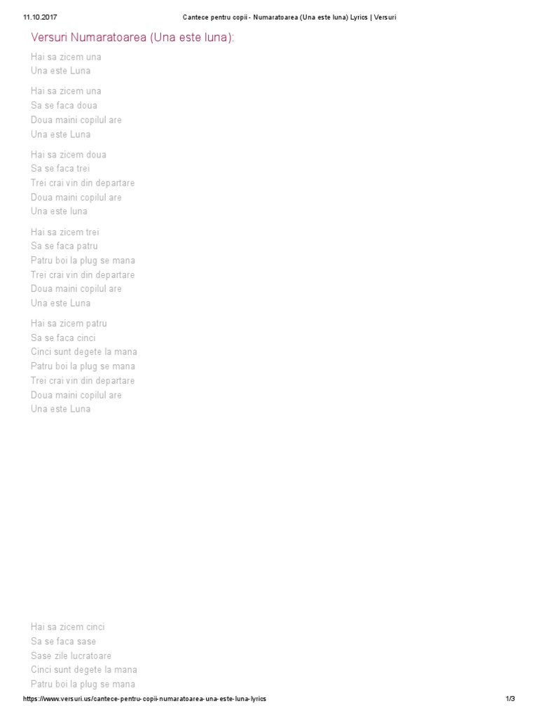 Cantece Pentru Copii Numaratoarea Una Este Luna Lyrics Versuri