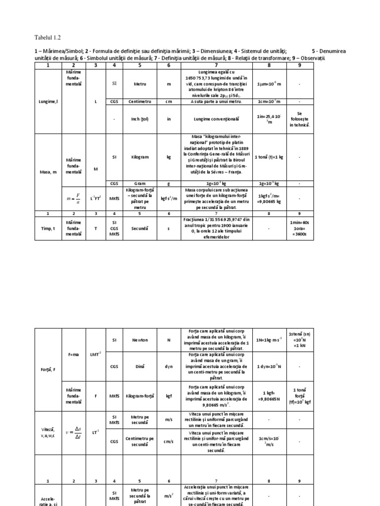 Tabel Marimi Fizice Si Unitati De Masura Pdf