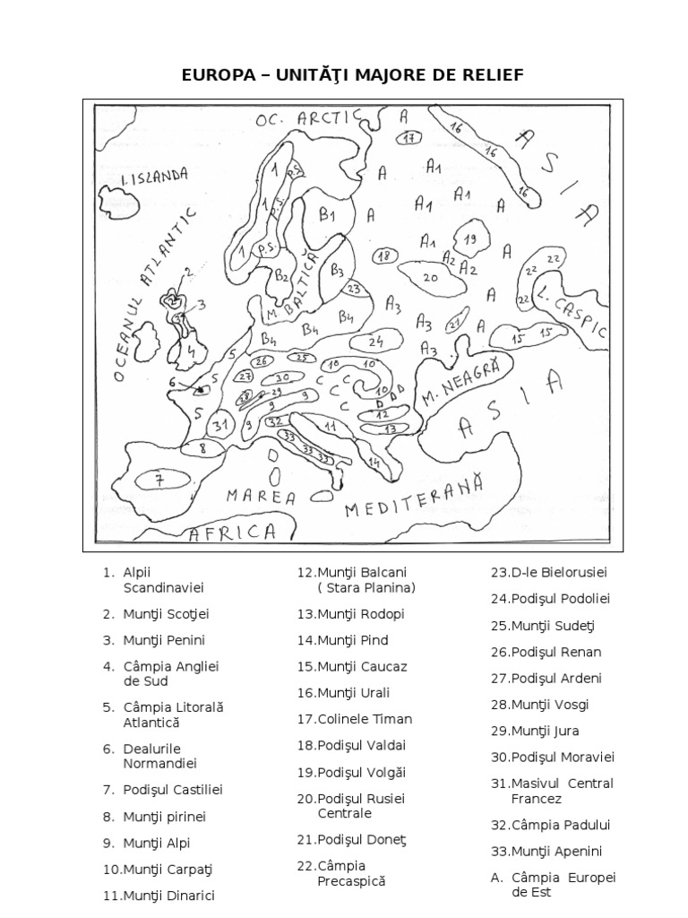 Geografilia Hartă Bac Unitățile Majore De Relief Din Europa